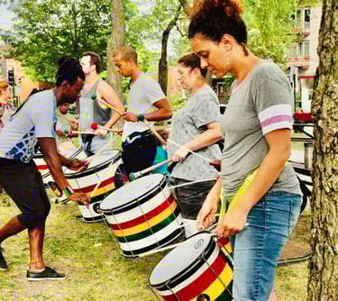 This high-energy workshop uses the dynamic rhythms of Samba-Reggae from Salvador, Bahia, Brazil to build communication, leadership, focus, and group synergy in a fun and unforgettable way.